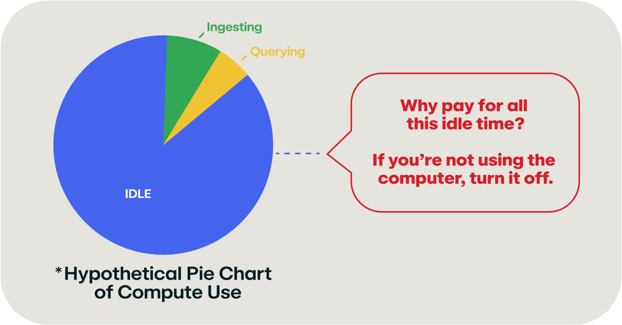 So let’s talk about those computers that I keep magically wishing away. If you think about a SIEM, how busy are those computers normally? They’re always ingesting data, as that data will always flow into the system; and your security team is probably occasionally querying the data. The rest of the time, those computers are sitting idle. And bored (computers get bored). This pie chart shows a hypothetical amount of boredom your SIEM is experiencing right this second.