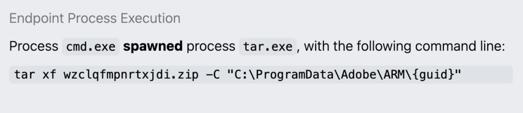 An example of tar writing a ZIP archive to C:\ProgramData\Adobe\ARM\{guid}